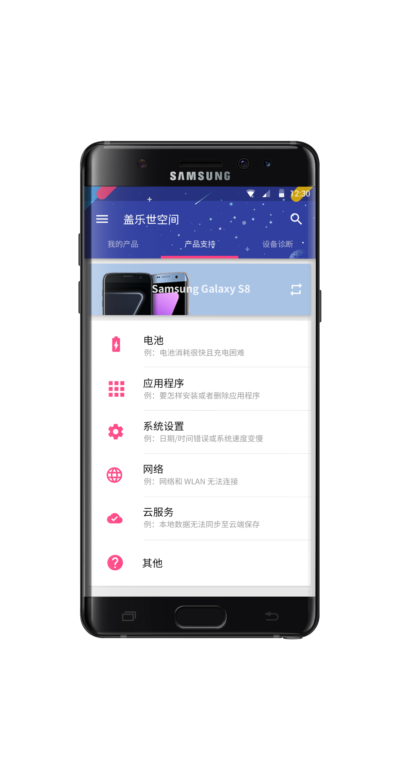 In Galaxy Care, you can view all your product status, parameters, and information, and learn about the latest event news.