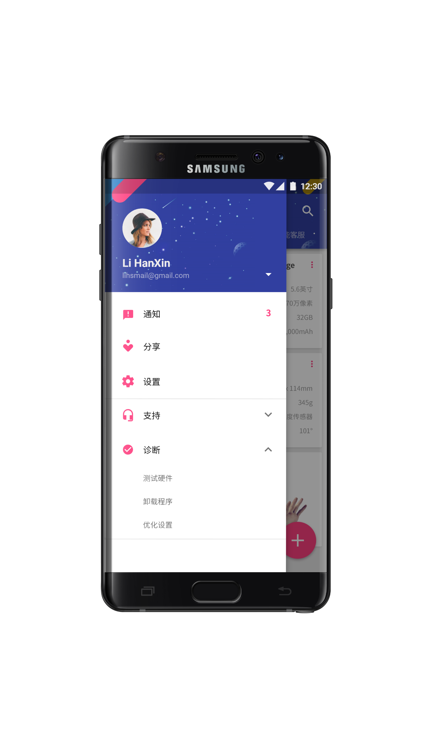Following the Material design design language, the menu is placed on the sidebar, and the personal information and notifications are clear at a glance.